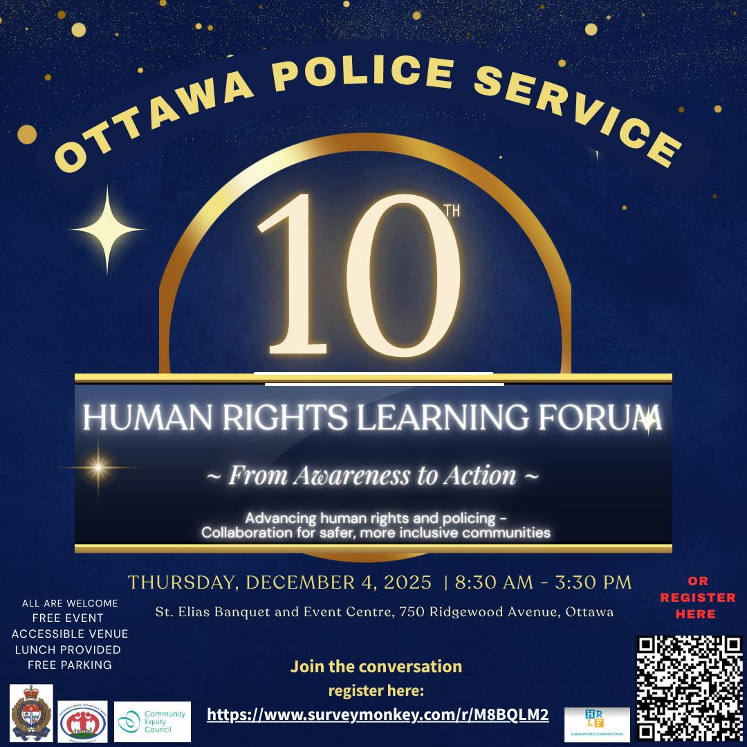 We are thrilled to invite you to the 10th Annual Human Rights Learning Forum, hosted by the Ottawa Police Service.